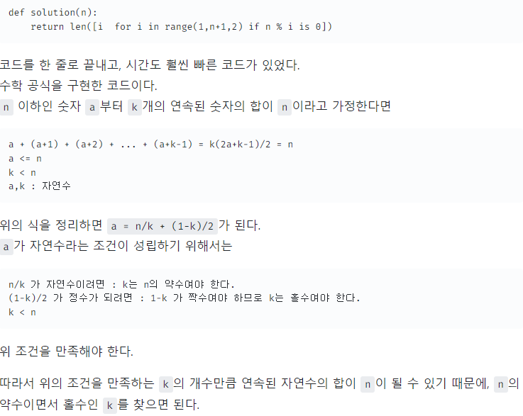 2์ค for๋ฌธ์ ํตํด์ ์ฒซ๋ฒ์งธ for๋ฌธ์์๋ 1๋ถํฐ ์์ํ์ฌ n๊น์ง for๋ฌธ์ด ๋๊ฒ ๋๊ณ ๋๋ฒ์งธ ์๋ for๋ฌธ์์๋ i๋ถํฐ n๊น์ง ๋๊ฒ ๋๋ค. ๋๋ฒ์งธ for๋ฌธ ์์์ sum ์ด n๊ณผ ๊ฐ๋ค๋ฉด sum = n ์ ๋ง์กฑํ๋ ๊ฐฏ์๋ฅผ ํ๋ ๋ํด์ฃผ๊ณ sum์ด n๋ณด๋ค ํฌ๋ค๋ฉด ๊ทธ ์ซ์๋ ๋์ด์ sum = n์ ๋ง์กฑํ ์ ์๊ธฐ ๋๋ฌธ์ ๋๋ฒ์จฐ์ ์๋ for๋ฌธ์ ํ์ถํ๋๋ก ๊ตฌํํ์๋ค.