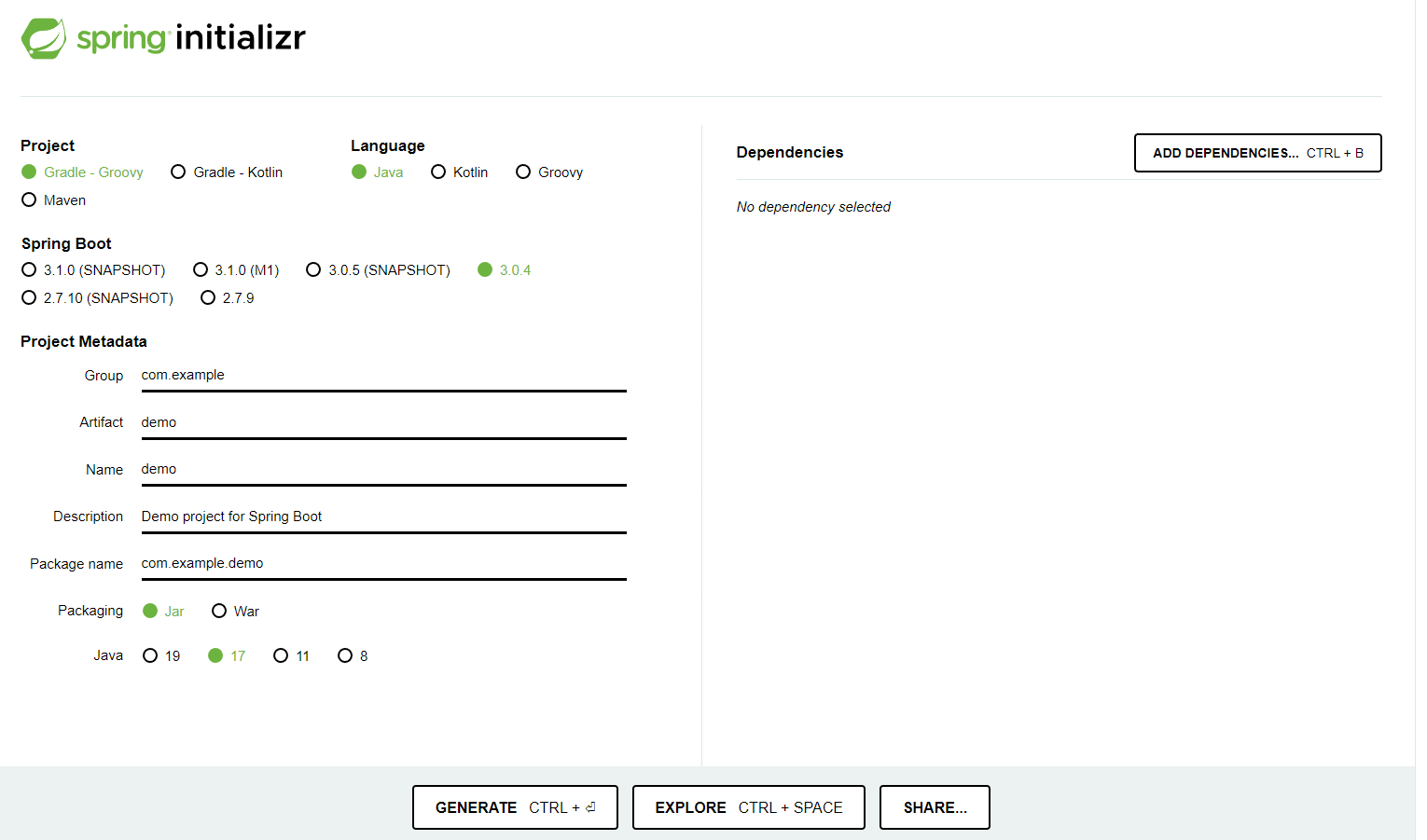 κ°λ¨ν μΈν μ°μ΅μ΄κΈ° λλ¬Έμ Spring Web, Thymeleafλ₯Ό μ ννμμ΅λλ€.