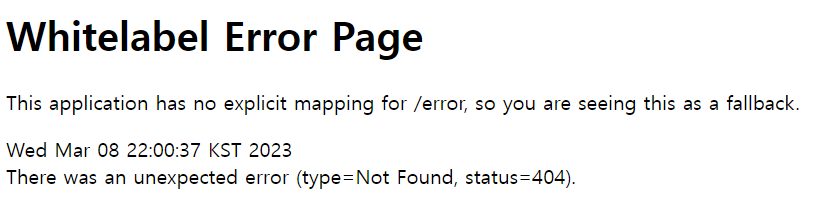 localhost:8080 λ‘ μ μμ νκ² λμμ λ μλμ κ°μ νμ΄μ§κ° λμ€λ©΄ μ±κ³΅ν κ²μ λλ€.